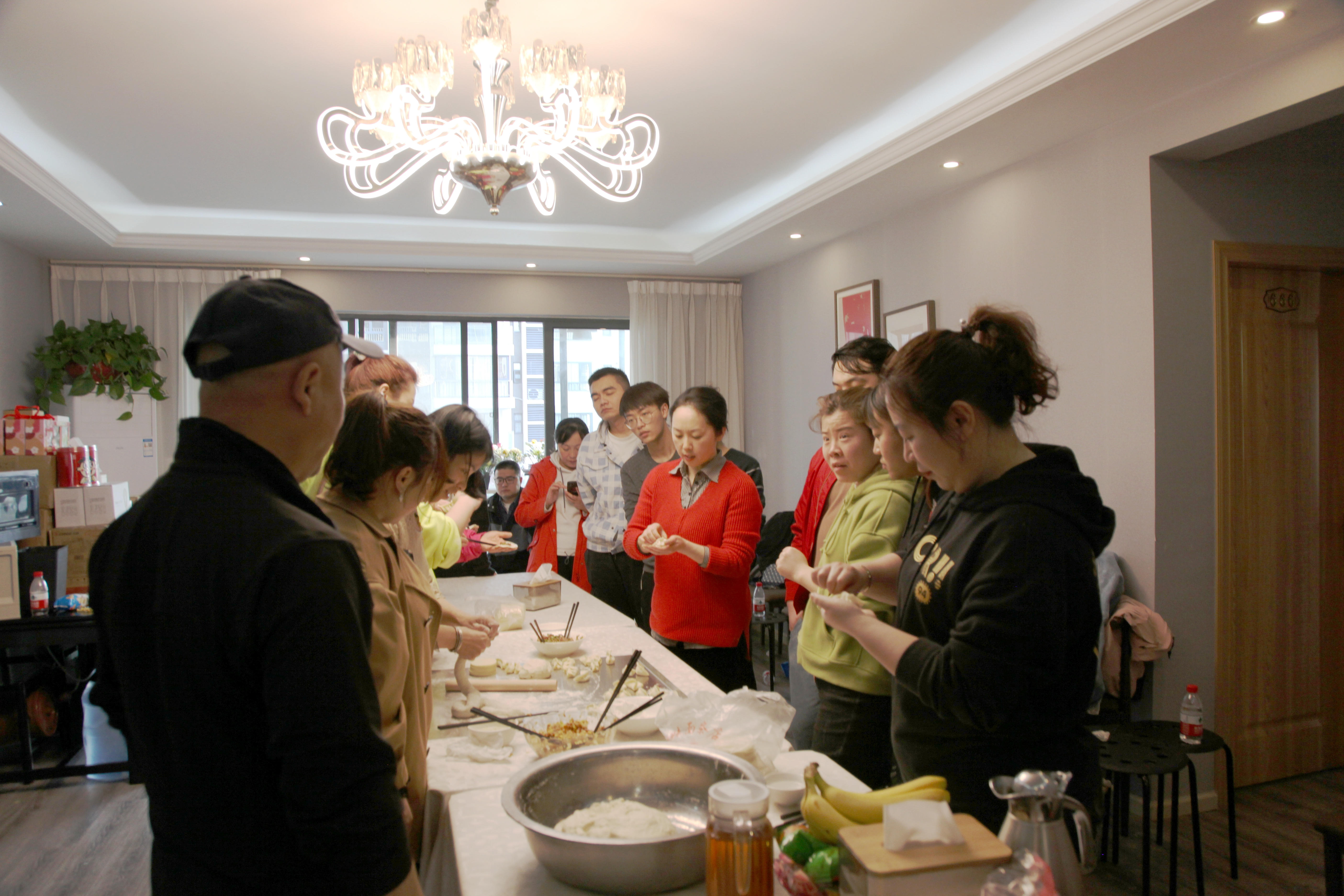 活動(dòng)的最后,所有職工分工協(xié)作,搟皮、和餡、包餃子,只見(jiàn)大家熱情高漲,各顯身手,一邊切磋技藝,一邊交流經(jīng)驗(yàn),十指合攏一捏,一個(gè)個(gè)形態(tài)各異的餃子就成型了。