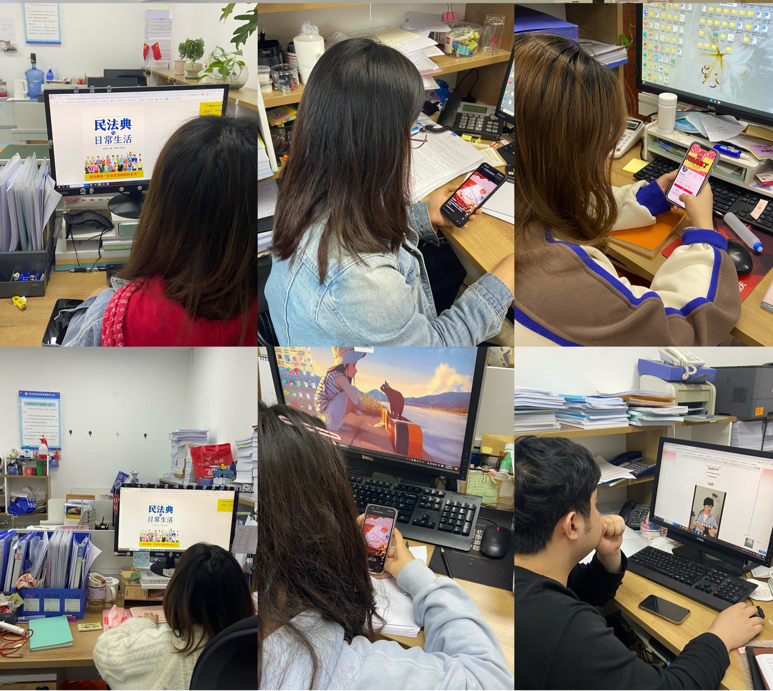 圖為組織職工線上閱讀《民法典與日常生活》、線上觀看普法小視頻